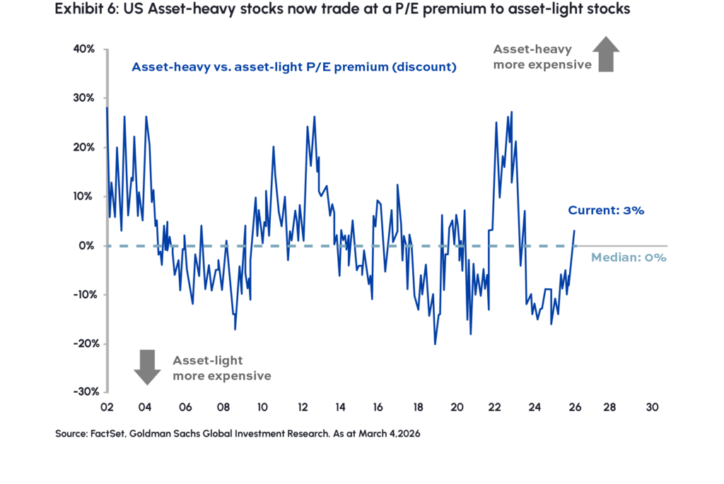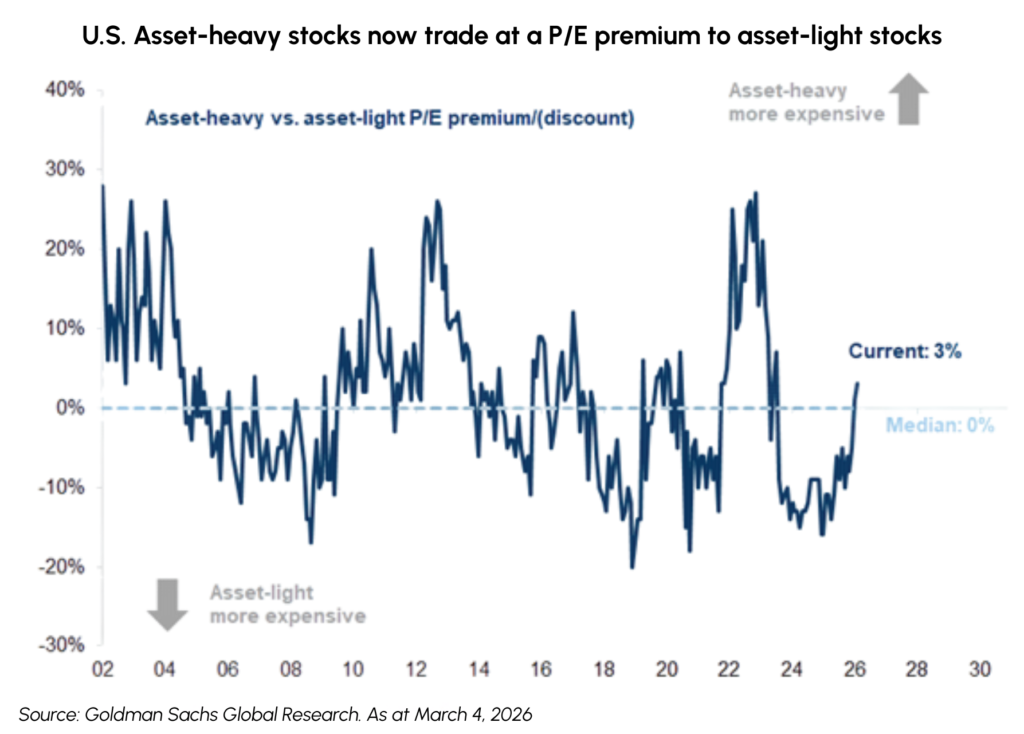 February extended the market broadening theme that has been developing since late 2025, with the TSX Composite (+7.7%) continuing to outperform the S&P 500 (-0.7%) and the Nasdaq (-3.3%) as at the end of February 2026. While major indices remain in a bull market, rising single-stock volatility has triggered significant sector rotation, particularly out of Mega-Cap Technology and into “HALO” sectors (high assets, low obsolescence), including Energy, Utilities and Pipelines, Materials and Real Estate.
